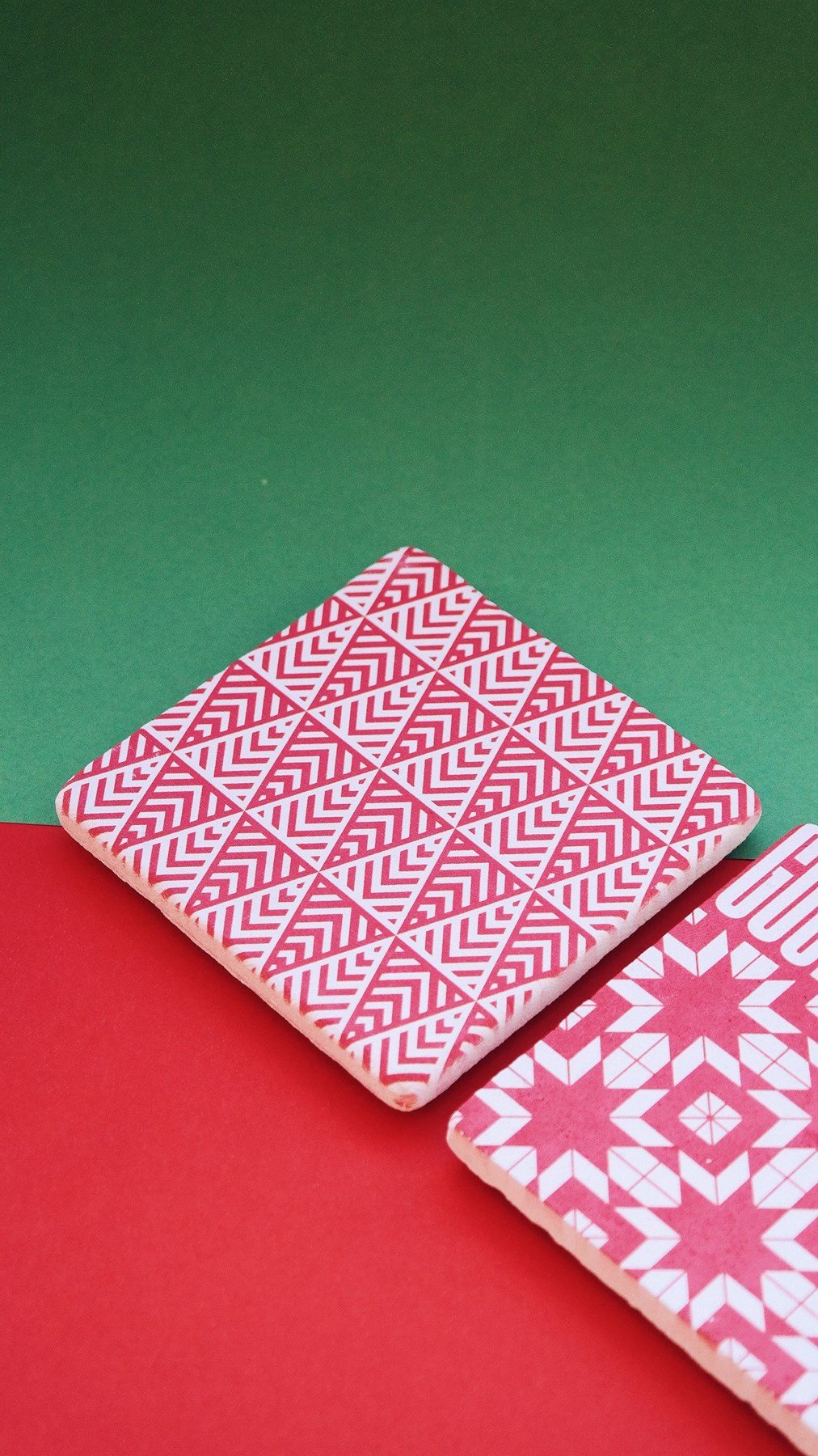 Yılbaşı baskılı doğal taş bardak altlığı