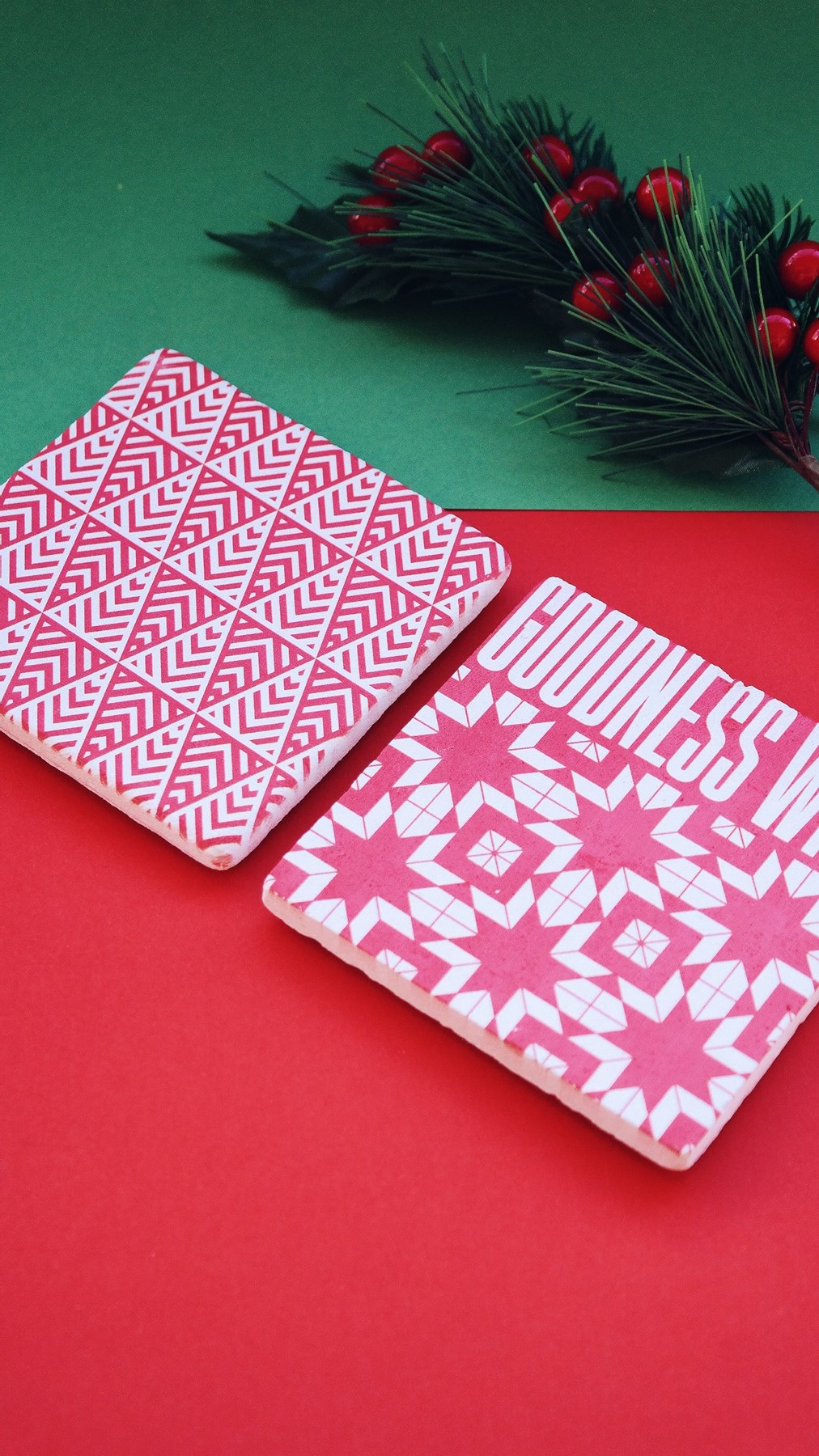 Yılbaşı Taş Bardak Altlığı İkili Set